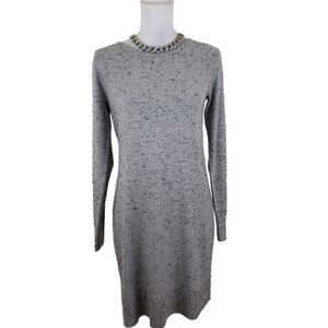 LOFT~Size S~Gray Knit Keyhole Back Sweater Dress Long Sleeve.