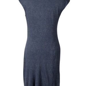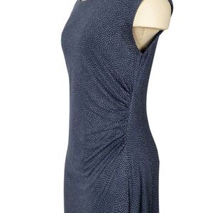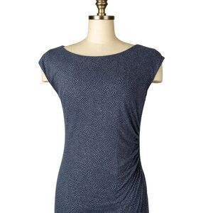 LOFT Slate Blue Shift Dress with Ruching, Small Geometric Pattern, medium tall