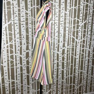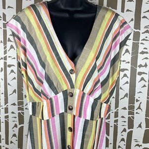 Additional Details: Great striped print, fabric has a texture to it that reminds me of linen (but it's not), fully functional button front