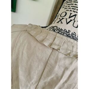 Ann Taylor Loft Shirt 100% Linen Brown Full Zip Ruffle Cardigan/Jacket size small. Has pockets!