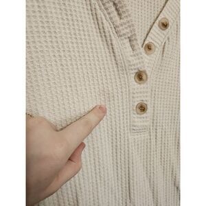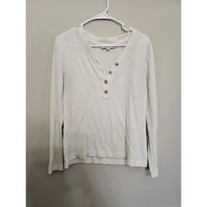 LOFT WOMEN'S SUPER SOFT LONG SLEEVE BRUSHED WAFFLE HENLEY TOP IVORY SIZE Large P