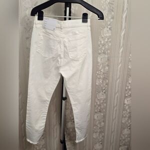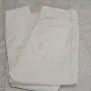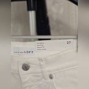 These LOFT white jeans feature a chic ankle-cropped design, perfect for a modern and stylish look. Crafted from high-quality denim, they offer a comfortable fit and a versatile addition to any wardrobe. Ideal for both casual outings and more polished occasions, these jeans are a must-have staple.