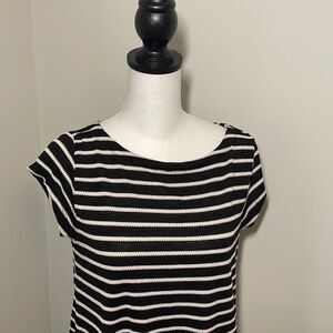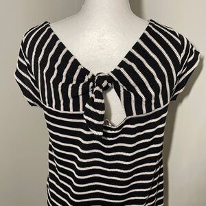 LOFT Womens Cap Sleeve Casual Top Shirt Striped Cut Out Back Small Petite Black