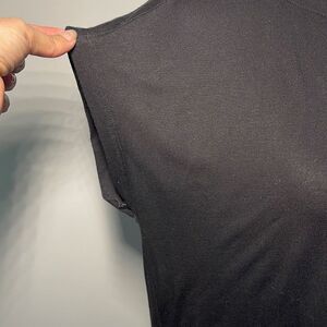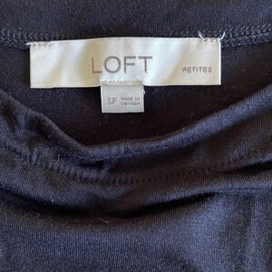 LOFT Women's Capped Short Sleeve Top Casual Shirt Round Neck Size Small Petite Black Solid Plain Pattern Stretch Soft Fabric.