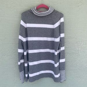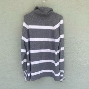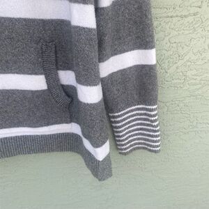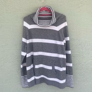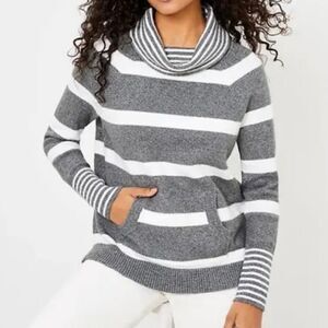 LOFT Women's XL Gray Striped Cowl Neck Sweater with Pocket