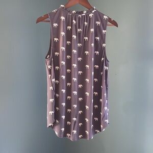 LOFT-charcoal black Sleeveless Top with White Elephant Pattern