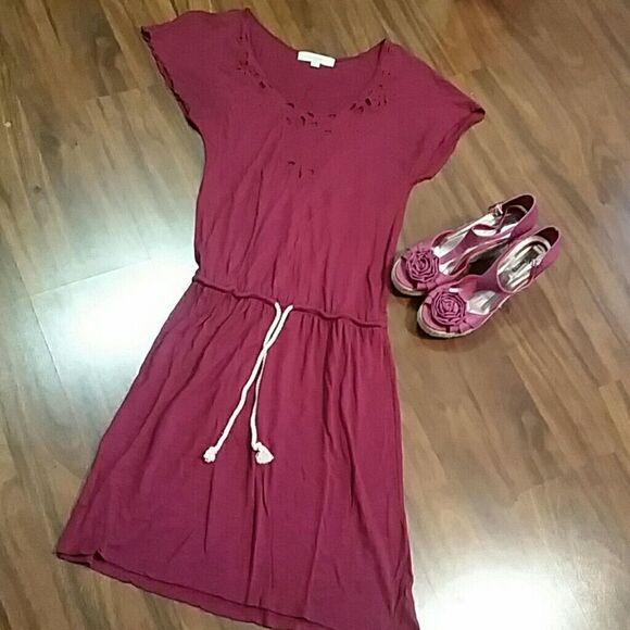 Girly and adorable this casual dress is perfect. It has only been worn once so it is in perfect like new condition. Cut outs with floral detail at the neckline and rope tie at the waist.