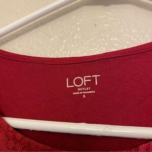 LOFT red lace 3/4 sleeve crew neck blouse top cotton casual blouse S