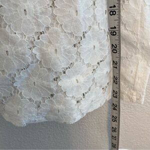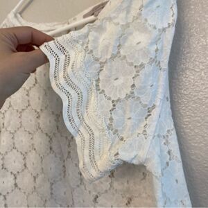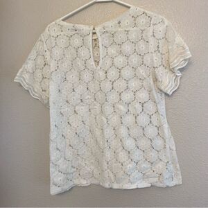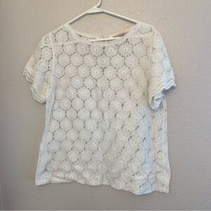 LOFT white lace crochet semi sheer crewneck blouse top cotton nylon beachy M