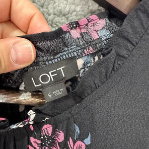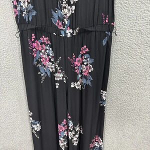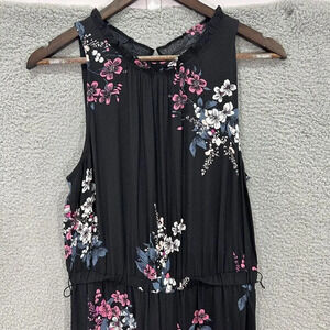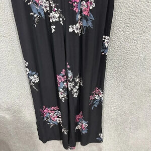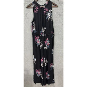 LOFT women jumpsuit womens small black floral sleeveless wide leg stretch waist