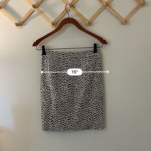 Loft brand. This is a work professional skirt. It is a gray and cream color. It has a zipper in the back. The measurements are in the pictures above. Brand new condition!