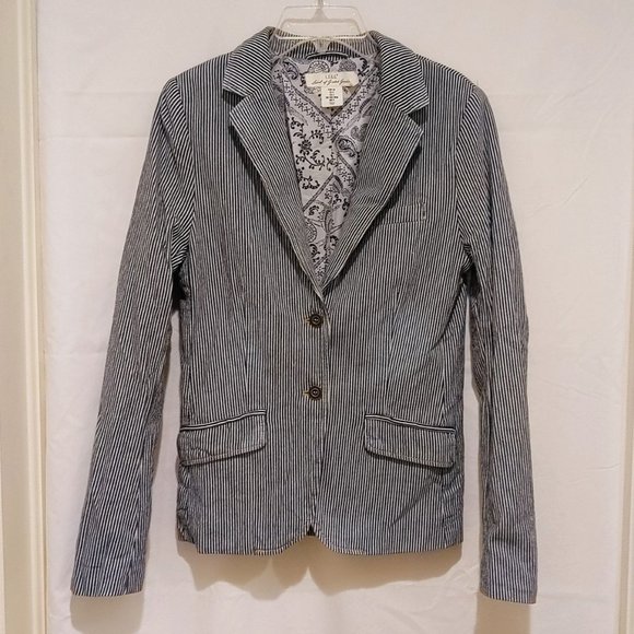 L.O.G.G. By H & M - Blazer Blue and White Stripes with Revers Collar Pre Owned