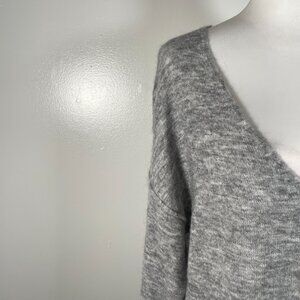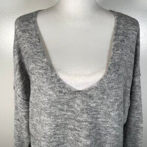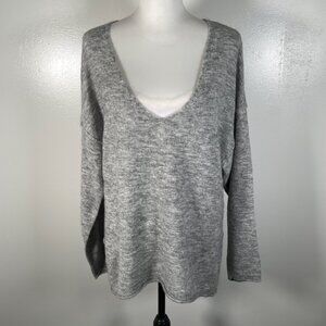 LOGG Gray White Marled Deep V Neck Tight Knit Long Sleeve Pullover Sweater S