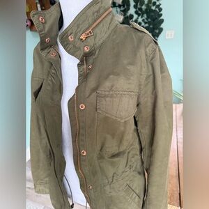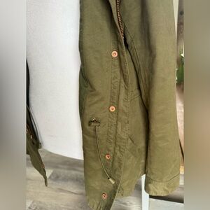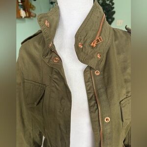 LOGG Olive Green Collared Full Zip Snap Cargo Jacket 6 H&M Cinch Waist Military Jacket. Great for layering in the spring and fall.