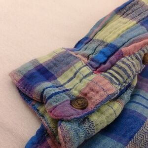 L.O.G.G by H&M Button Down Flannel Plaid Size 4 Blue, Pink, and a pale neon yellow