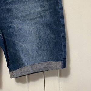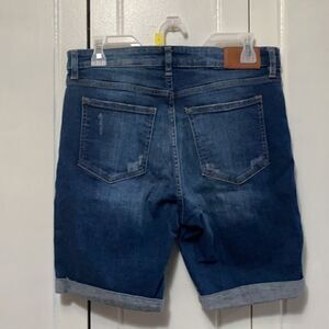 L.O.G.G. Label of Graded Goods medium wash longer length denim Jean shorts size medium in great condition. High waisted. Rolled cuffs and slightly distressed back pockets. Waist approximately 15” flat inseam length approximately 8” and rise is 10”.