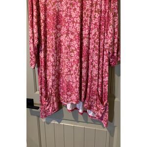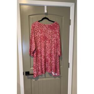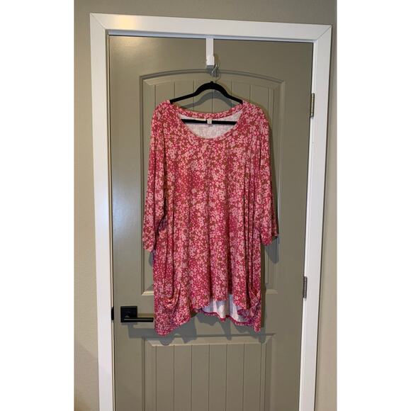 Lori Goldstein berry colored floral tunic. Three quarter sleeves, round neckline and pockets. Size 3XL. EUC.