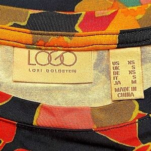 LOGO BY LORI GOLDSTEIN 70s RAYON 230 FLORAL PRINT TOP SZ XS/S NWOT