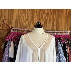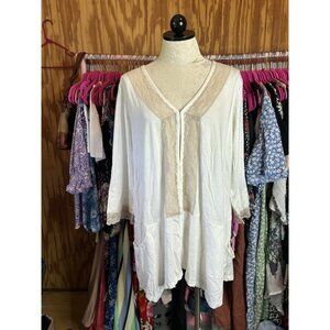 LOGO By Lori Goldstein Embroidered Lace Front Hook Closure Tunic Top NWOT XL