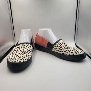 LOGO By Lori Goldstein Megan Salmon Red Leopard Black Slip On Retro Shoes Sz 10