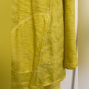 lightweight v neck tunic style flowy top with functional pockets and side panel embroidery detail