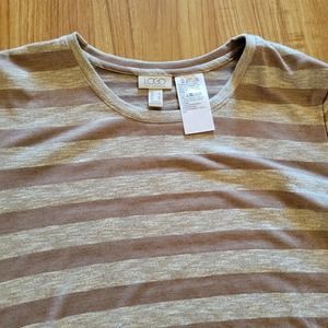 LOGO By Lori Goldstein Shirt Top Womens Large Beige Striped Flowy Casual Basic