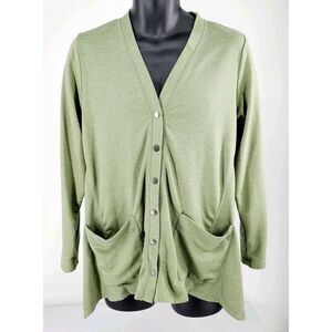 LOGO By Lori Goldstein Snap Slouch Cardigan Sage Green Pockets French Terry S.