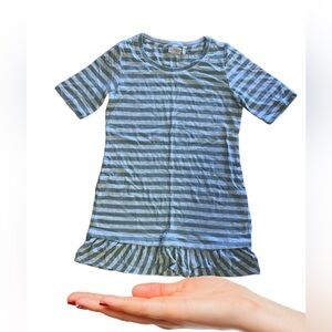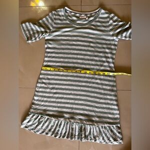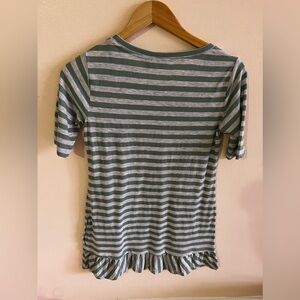 LOGO By Lori Goldstein Stripe Knit Shift Dress Flounce Hem Green XXS