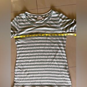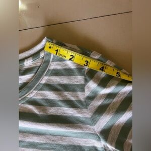LOGO By Lori Goldstein Stripe Knit Shift Dress Flounce Hem Green Womens XXS