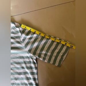 The dress comes in a beautiful green color with blue stripes, adding a pop of color to your wardrobe. The short-sleeved dress is perfect for a casual occasion and can be paired with your favorite accessories to complete the look. This dress is available in XXS size and is ideal for women who love stripes.