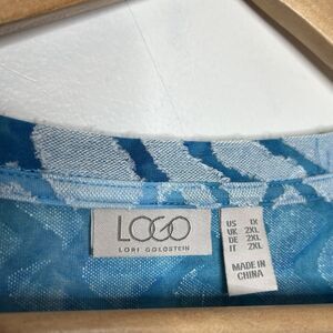 LOGO By Lori Goldstein Blue Textured Short Sleeve T-Shirt
