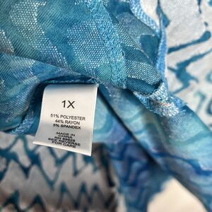 LOGO By Lori Goldstein Textured Short Sleeve Top Womens 1X Tropical Resort