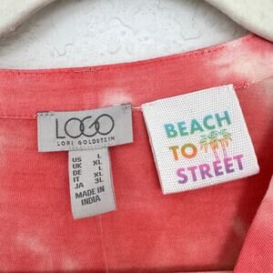 LOGO By Lori Goldstein Womens India Button Shirt Watercolor Mixed Fabric Orange