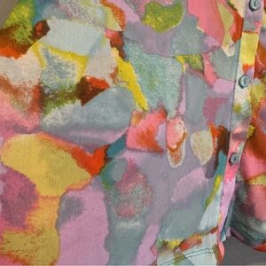 LOGO Colorful Artsy Button-Up Mesh Shirt Long Sleeve Pastel L