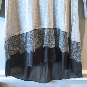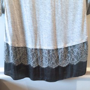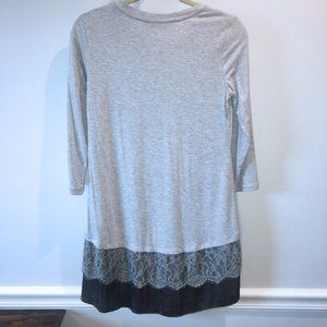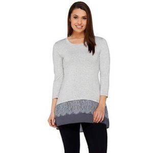 LOGO Gray Lace Trim 3/4 Sleeve Tunic XS
