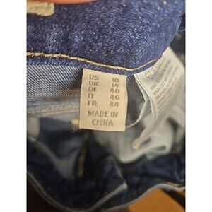 The LOGO Jeans by Lori Goldstein in women's size 10 are a stylish and comfortable choice for your wardrobe. These boyfriend fit jeans feature a high rise with a dark wash, giving them a trendy edge. The solid blue color and logo accents add a touch of flair, while the zip and button closure ensures a secure fit. With a regular fit and 28.5-inch inseam, these denim jeans are both fashionable and practical for everyday wear. Made in the United States, these jeans are a versatile addition to any woman's clothing collection.