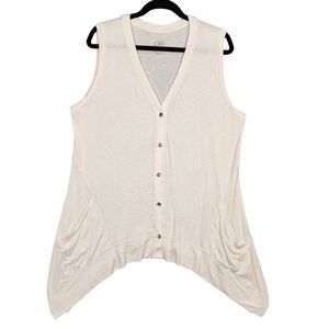 LOGO LORI GOLDSTEIN Cream Sharkbite Slouchy Sleeveless Button Cardigan Vest SIZE LARGE