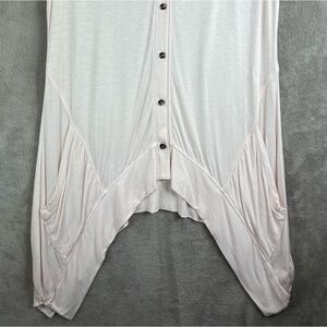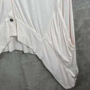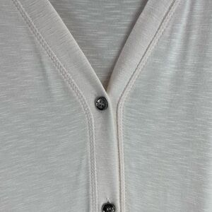 This Lori Goldstein sleeveless button up cardigan is in excellent condition, except for a little spot on the inside of the bottom tail that looks a bit tattered, see picture for details.