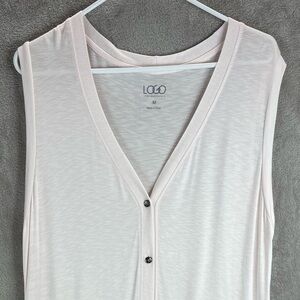 LOGO LORI GOLDSTEIN Pink Button-Up Sleeveless Cardigan w/ Pockets Medium