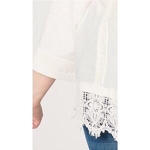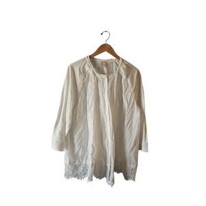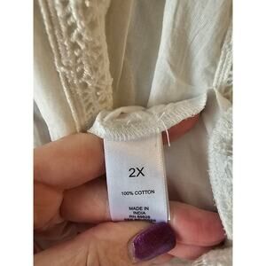 LOGO Lavish By Lori Goldstein Woven Button Front Top W/ Lace Trim Ivory 2X new