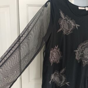 LOGO Lavish Embroidered Black Mesh Slub Knit Top XL