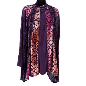 LOGO Lavish Womens 1X Purple Velvet & Floral Print Tunic Top