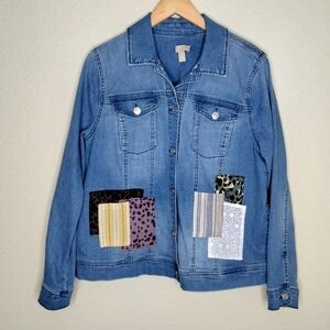 LOGO Lavish by Lori Goldstein Patchwork Denim Jacket size 12