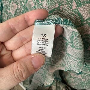 LOGO Layers Semi Sheer Green Snake Print Long Sleeve Top, Size 1X