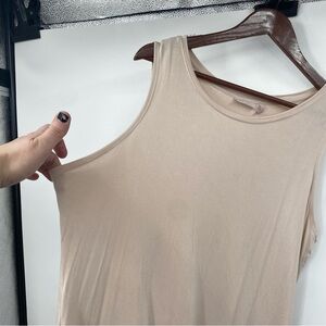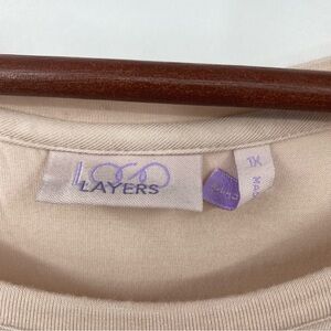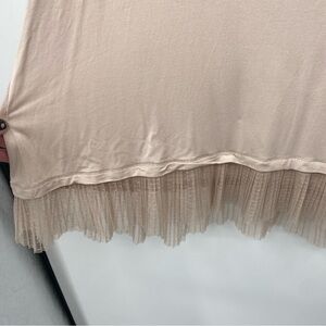 LOGO Layers Tank Top Womens Size 1X Plus Beige Sleeveless Ruffle Mesh Trim Tunic