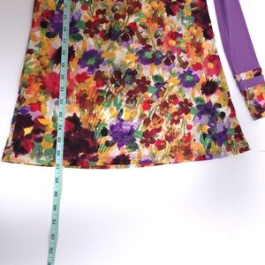 LOGO Layers by Lori Goldstein Printed Sheer Mesh w/Solid Details Purple XS