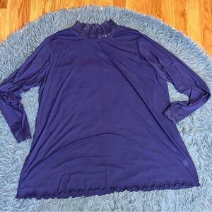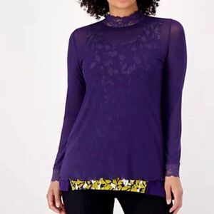 LOGO Layers by Lori Goldstein Sheer Mesh Mock Neck Top with Lace Trim Nightshade Blue Large A385387.