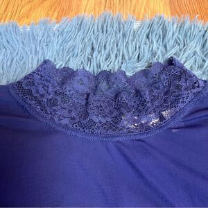 LOGO Layers by Lori Goldstein Sheer Mesh Mock Neck Top with Lace Trim Blue 2X