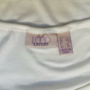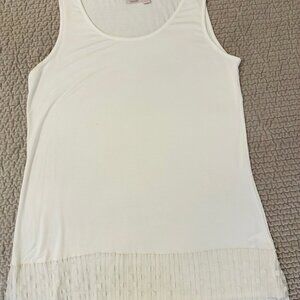 LOGO Layers by Lori Goldstein White Tank Top w/ Pleated Mesh Polka Dot Hem - L
