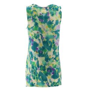 Features: allover print, sleeveless, scoop neckline, sharkbite hem